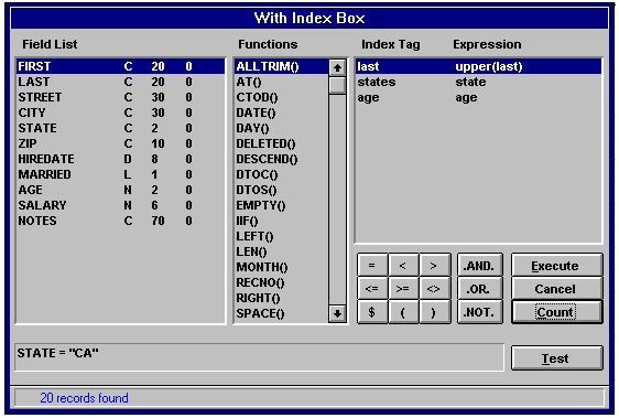 If True, the dialog is best suited for power users that are able to use the index list and key expressions to advantage. The dialog with the index box is shown below. The dialog without the index list is displayed on the next page.